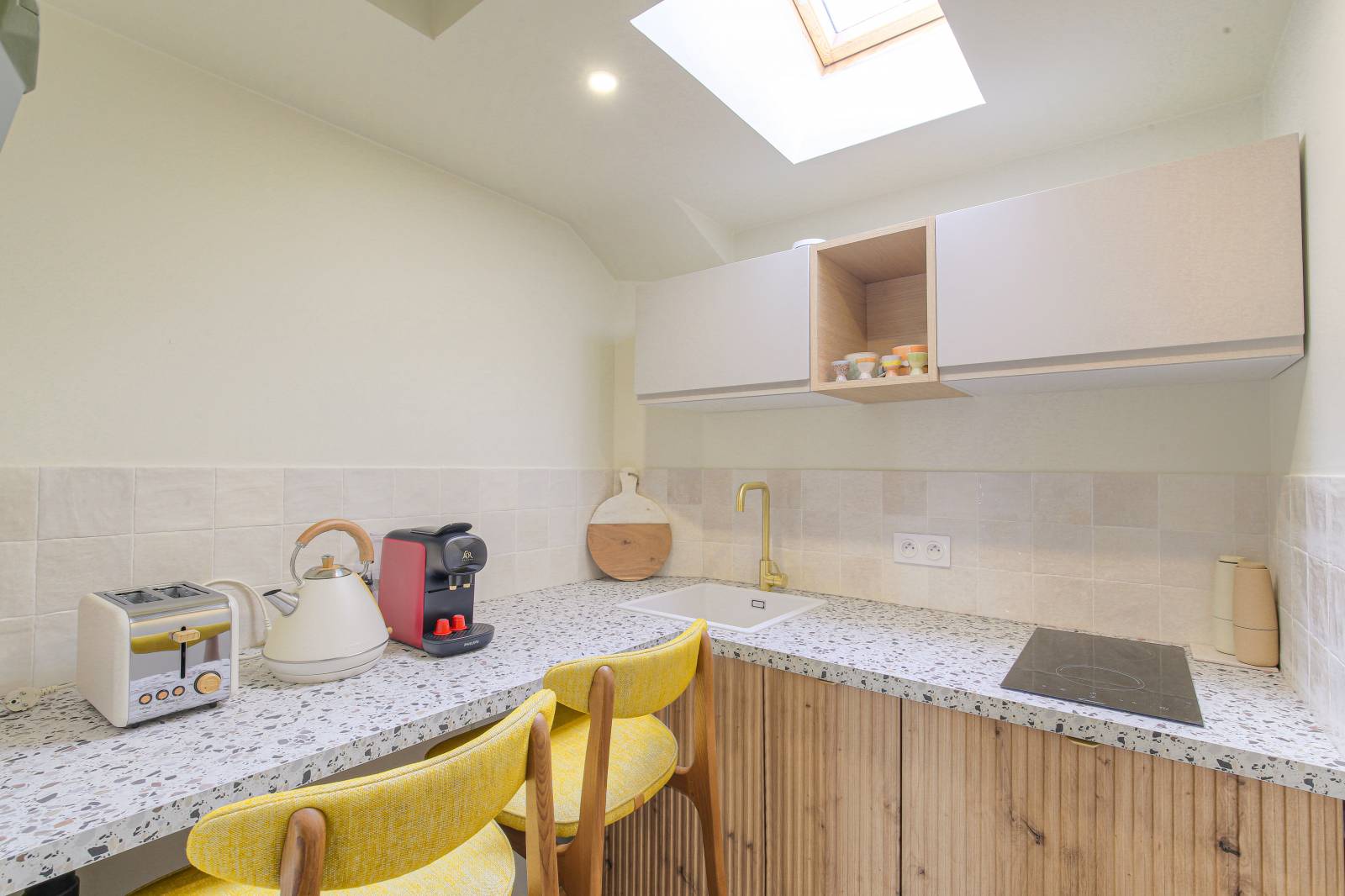 Après la démolition et l'évacuation de toutes les cloisons, nos équipes se sont occupées de la restructuration des espaces. La cuisine et la salle de bain ont été inversées afin d'offrir une belle suite avec du caractère.
