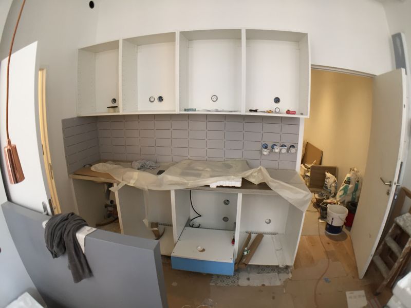 Création d’une cuisine ouverte avec un coin repas, réalisation d'une chambre séparée de la pièce à vivre, rénovation et modernisation de la salle de bain.
