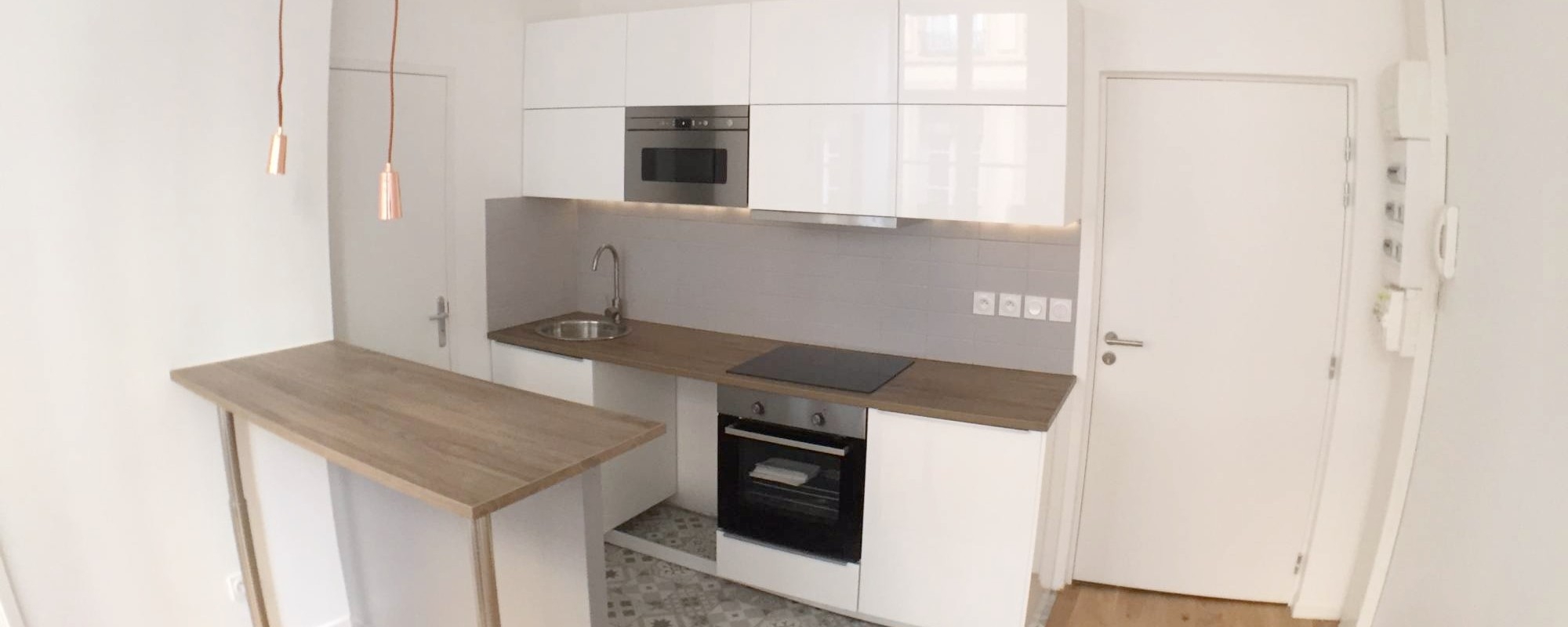 Alliance Rénovation s'est occupée du relooking et de l'agencement de ce studio de 21 m² dans le centre de Lyon 69002.