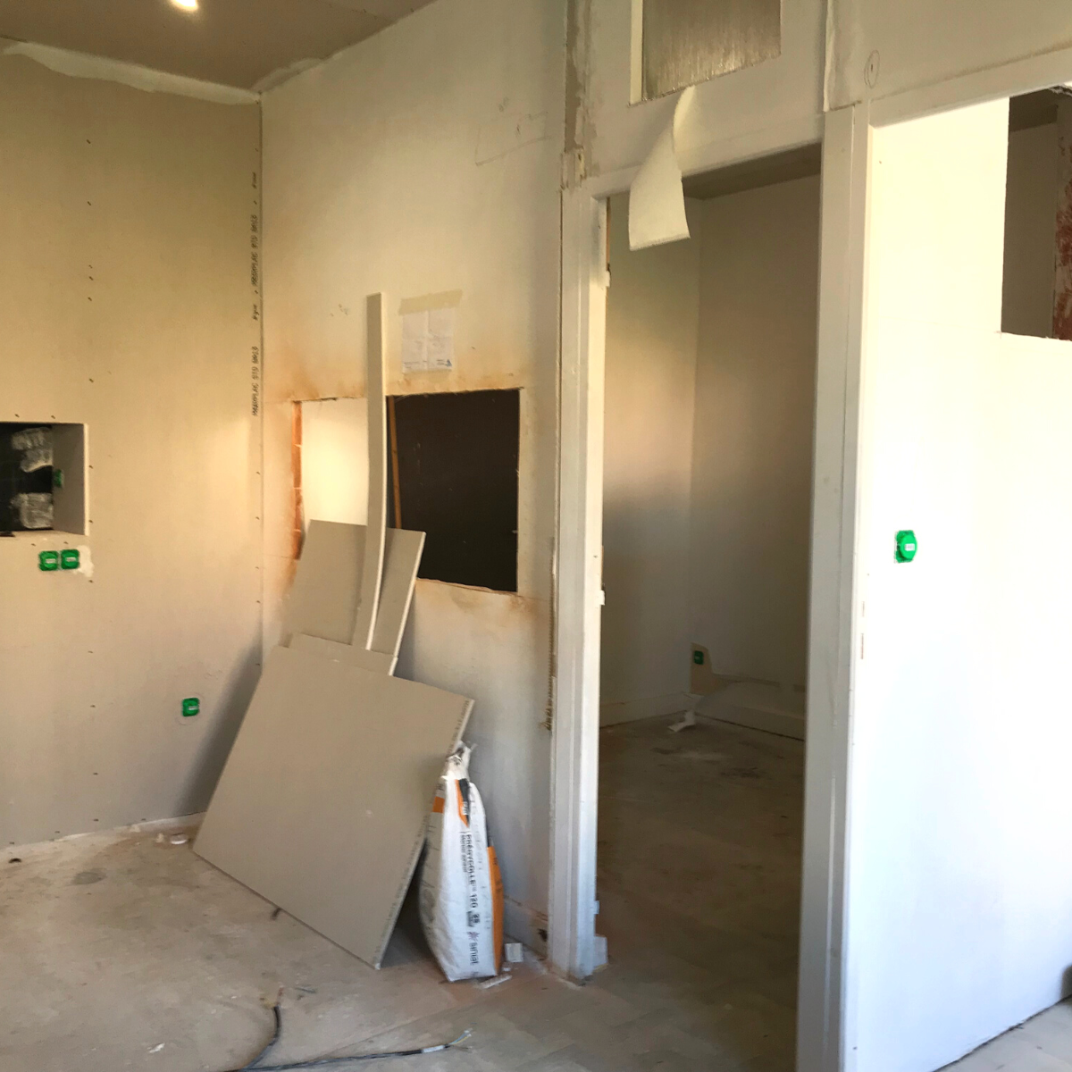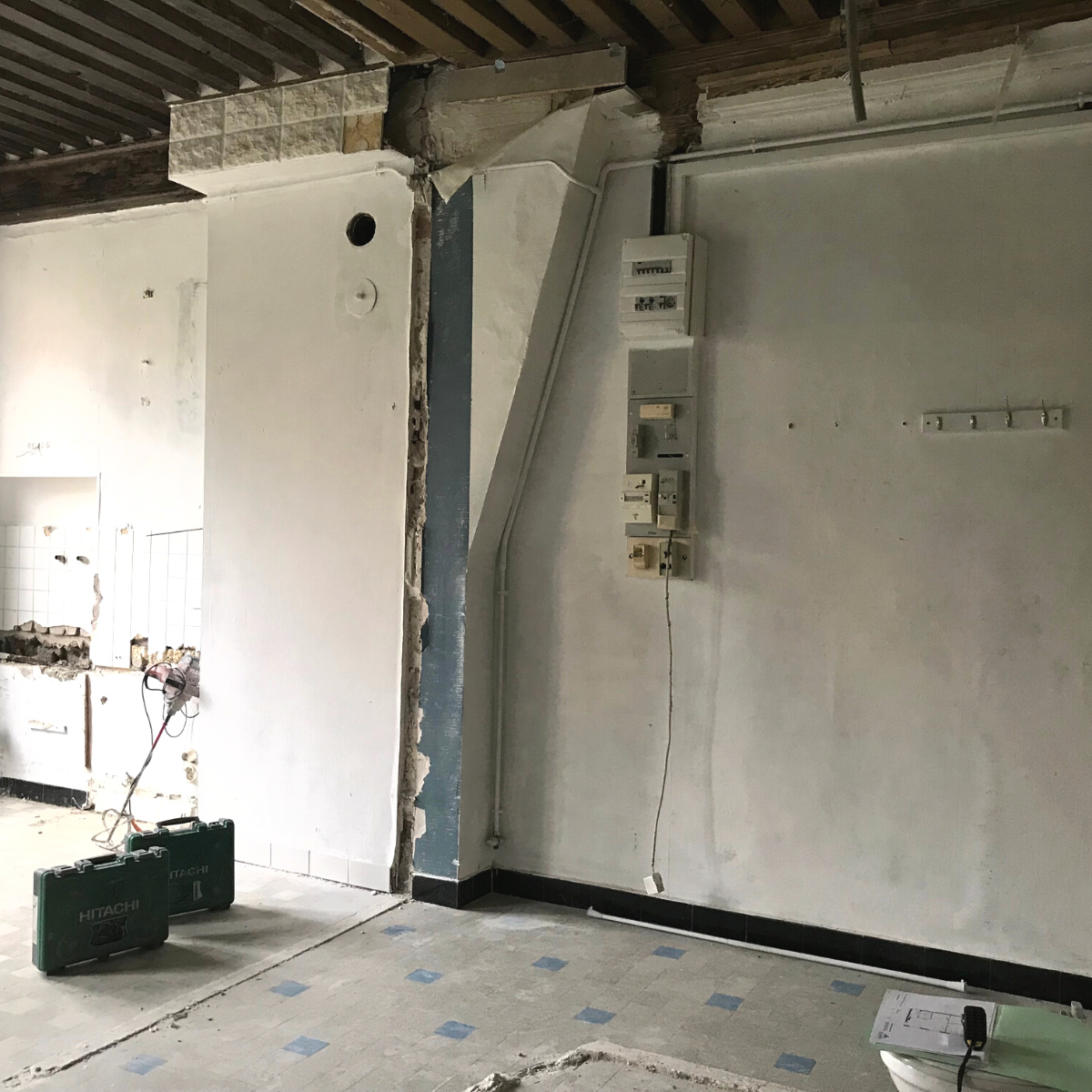 Nous avons déménagé la cuisine qui se trouvait dans le salon dans une ancienne alcôve, le but était de réorganiser le salon et d'optimiser l'espace.