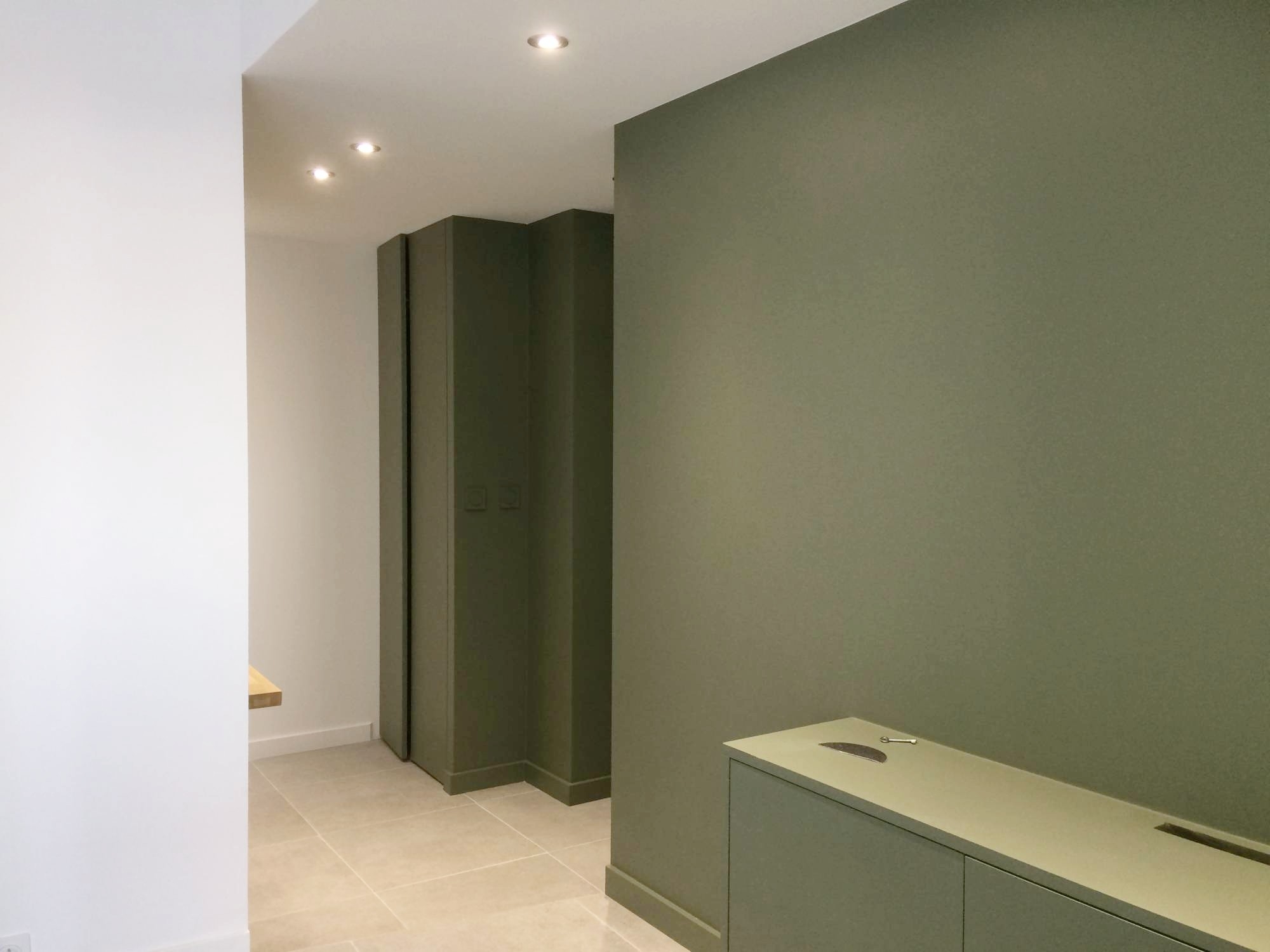 des placards, un meuble TV et une verrière sur-mesure.