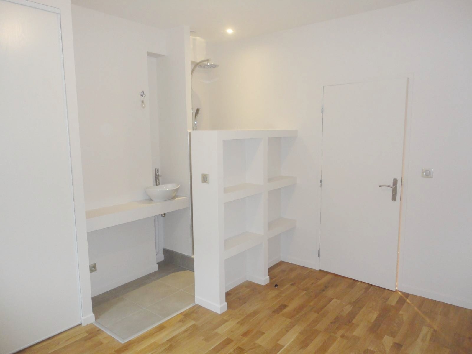 Création d'une salle d'eau suplémentaire ouverte sur une chambre.